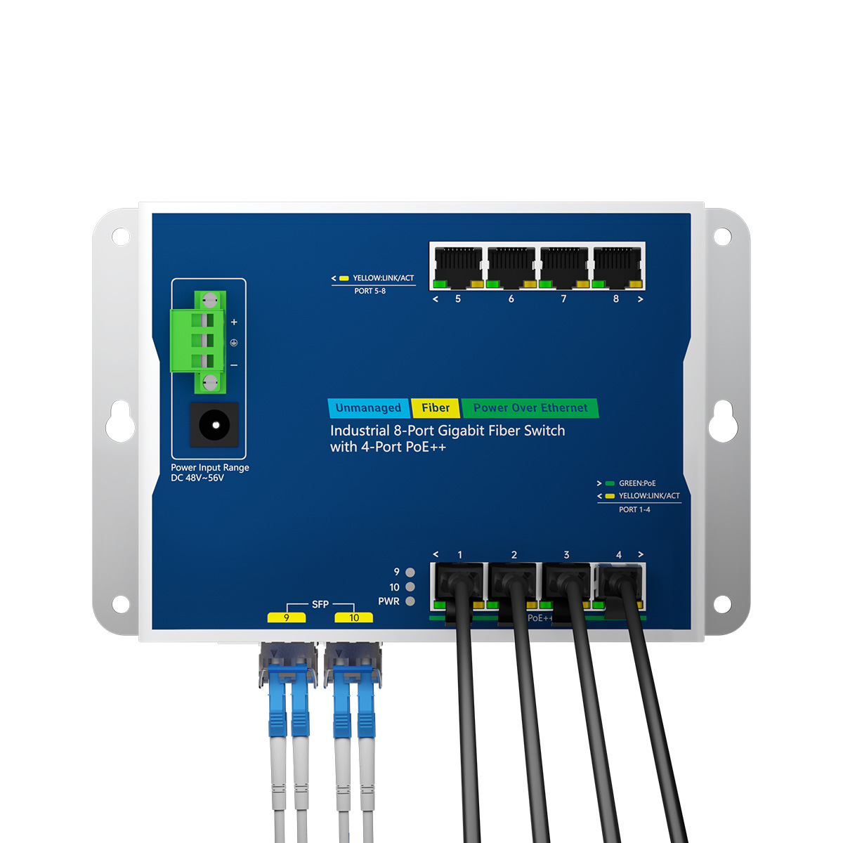 Allocate 4 high-power PoE++ ports exclusively to energy-intensive devices while using the 4 non-PoE Gigabit ports for data-heavy connections like NVRs or controllers. This design prevents power contention and ensures both high bandwidth and stable power delivery.